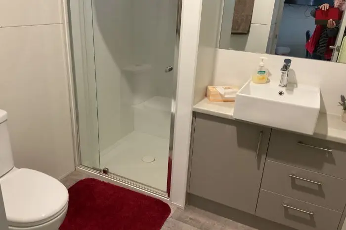 13. Bathroom with shower, toilet and vanity